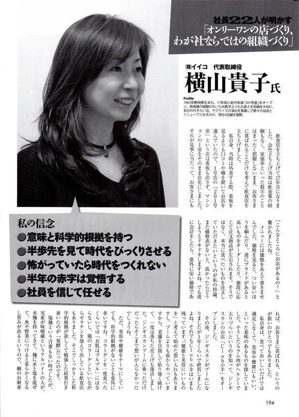 【居酒屋2014】に「イイコ代表・横山貴子」が掲載されました。