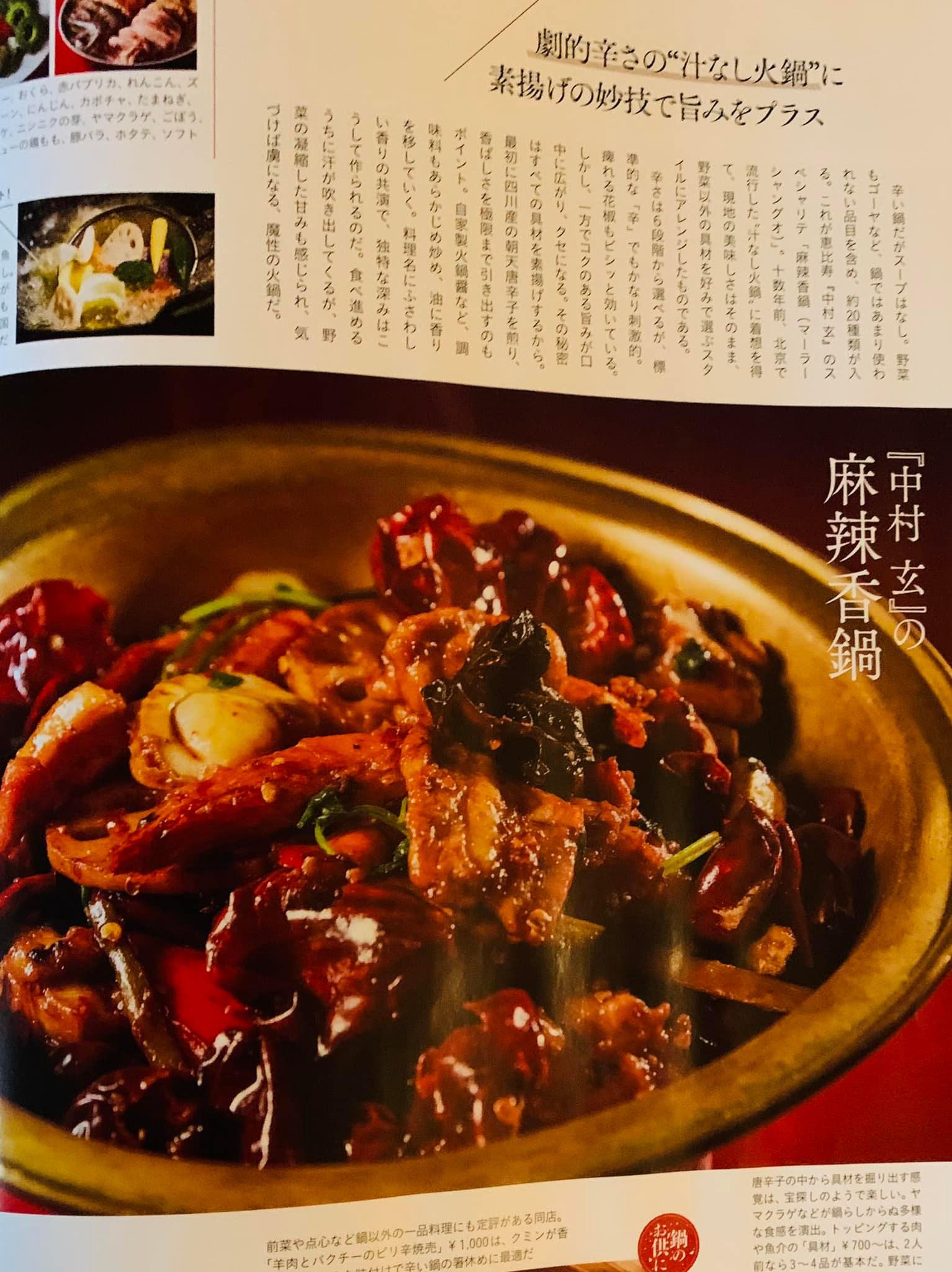 現在発売中の「東京カレンダー」に【中村玄】の麻辣香鍋(マーラーシャングォ)が掲載されています。