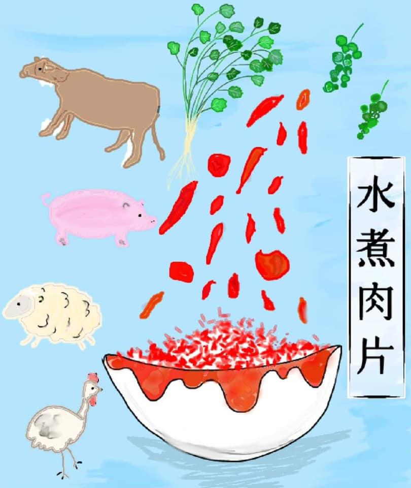 「水煮肉片」は中国語で「スイジューロウピェン」