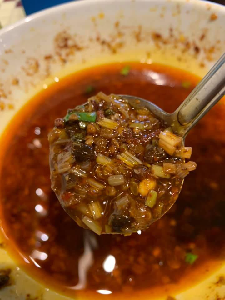 底の方にたまっている野菜たちは食べる辣油のようなので、お腹に余裕がある場合はご飯追加してご飯にかけて食べちゃってください^ ^
